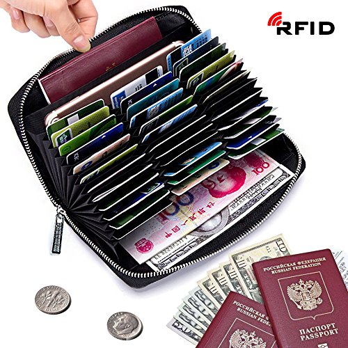 Credit Card Wallet Soft Leather RFID Blocking Card holder Case Zipper Purse Handbag for Women or Men