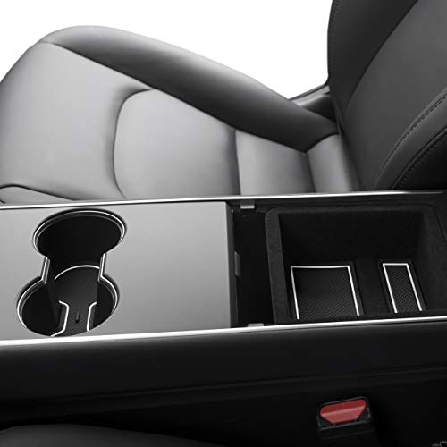 Cupholderhero Part#: 1stGenTeslaModel3CupLiner7White 810030990222 - CupHolderHero for Tesla Model 3 2017-2020 Custom Fit Cup Holder and Center Console Compartment Liner Accessories 7-pc Set (White Trim)