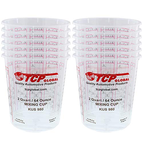 Custom Shop - Pack of 12-64 Ounce Graduated Paint Mixing Cups (2 Quarts) - Cups Have Calibrated Mixing Ratios on Side of Cup - Cups Hold 80-Fluid Ounces