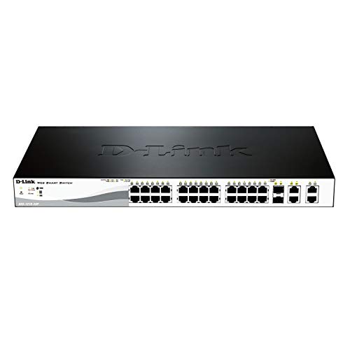 D-Link 24 28 Port Fast Ethernet PoE+ Managed Switch Web Smart 2 Gigabit BASE-T and 2 Gigabit Combo BASE-T/SFP Ports (DES-1210-28P)