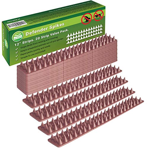 Defender Spikes, Cat and Bird Repellent [Protect Your Property] Outdoor Fence Security Control to Keep Off Roosting Pigeons and More Out. Plastic Deterrent Anti Theft Climb Strips - 20pk [20 Foot]