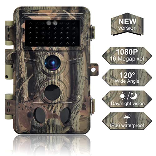 DIGITNOW Trail Camera 16MP 1080P, Game Camera with No Glow LED Infrared Night Vision Up to 65Ft, Waterproof Wildlife Hunting Cameras with 120° Wide Angle / 0.2s Trigger Time