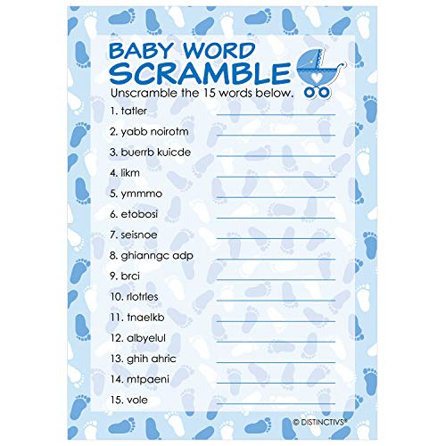 DISTINCTIVS Blue Boy Baby Shower Word Scramble Game - 20 Cards