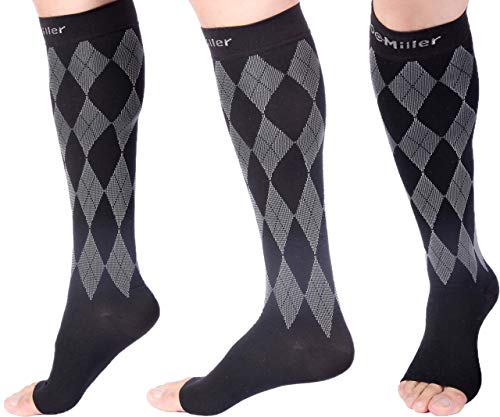- FEEL THE COMFORT: Through a dedicated eye for detail, Doc Miller has created knee high compression socks made of premium quality, breathable & durable high quality compression fabric Nylon 77%, Spandex 23%. With seamless woven construction, these fit snug with no loss of compression for a long time. Get these socks today; your legs will thank you!