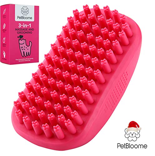 3-In-1 Dog Hair Remover, Massager & Pet Brush by PetBloome:Brushing your dog's coat on a regular basis is vital in order to remove dead and loose hairs before they fall on their own which may reduce natural shedding. A regular grooming routine with the correct animal grooming brush also helps to evenly distribute the natural oils produced by glands in his skin, keeping your pet's coat soft and silky.