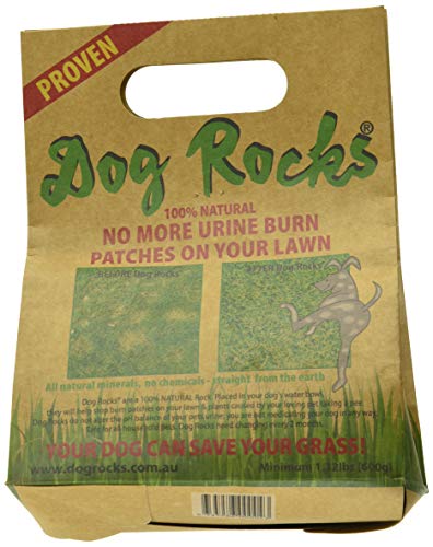 What are Dog Rocks? Dog Rocks are a 100% natural and safe Australian product that helps save your lawn from burn patches caused by dogs when they urinate on your grass. They filter out impurities in water, such as tin, ammonia, and nitrates. Dog Rocks have absolutely no harmful side effects to dogs, and even if your dog shares his bowl with the cat, it is fine for your cat to drink this water too. There is no change to the pH balance to either of your pet’s urine. The impurities are generally passed out through urine and when they come in contact with grass it results in grass burn; a dead yellow patch of grass. Dog Rocks make the water source cleaner for your pet and eliminate grass burn. Water without impurities from Dog Rocks will actually help your pet to fertilize your lawn. Your grass will start looking greener and fresher in no time at all. Dog Rocks are a naturally mined product so the rock sizes differ from pack to pack but the weight of each pack is the same and therefore the efficacy is consistent. There are usually 2 or 3 rocks per pack. One pack of Dog Rocks will last you two months, all the rocks from one pack need to be added to one water bowl. It is important to make sure that your pet drinks solely from this source of water, as any other water that they drink will not have been filtered by Dog Rocks and will therefore reduce the benefit of Dog Rocks. Top the water bowl up rather than replace the water everyday and when needed. Change the water when the dog is least likely to consume large amounts of water.Features:
