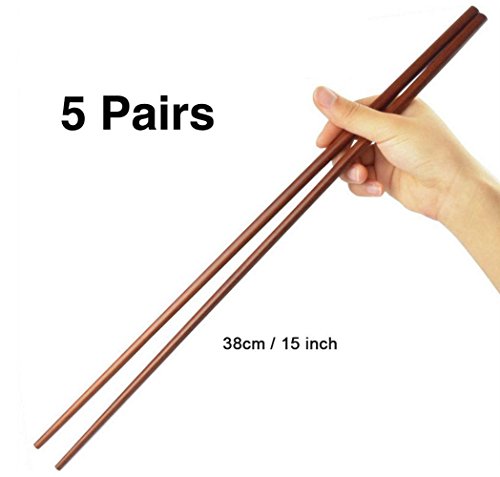 Dulcii Part#: DU-0038D 735551593977 - Dulcii Traditional Chinese Wooden Extra Long Chopsticks for Hot Pot, Frying, Cooking, Noodle, 38cm/15inch Each Pair (5 Pairs)