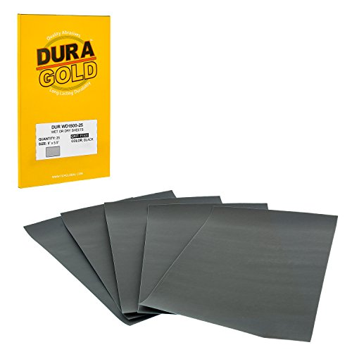 Dura-Gold - Premium - Wet or Dry - 1500 Grit - Professional Cut to 5-1/2" x 9" Sheets - Color Sanding and Polishing for Automotive and Woodworking - Box of 25 Sandpaper Finishing Sheets