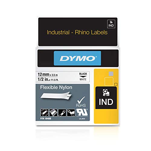 0 Part#: D18488 805100155984 - DYMO Authentic Industrial Labels for LabelWriter and Industrial Label Makers, Black on White, 1/2", 1 Roll (18488)