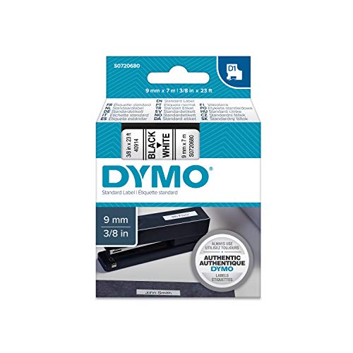 DYMO Standard D1 Labeling Tape for LabelManager Label Makers, Black print on White tape, 3/8'' W x 23' L, 1 cartridge (41913)