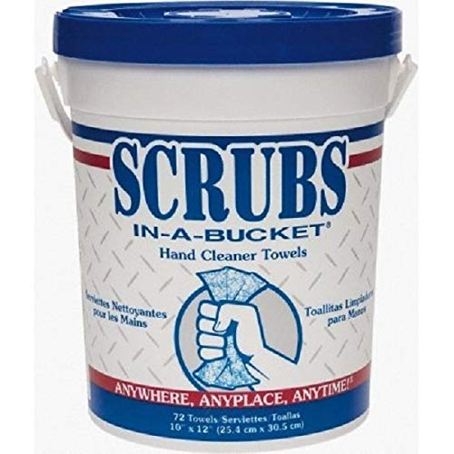 Dymon Scrubs In A Bucket are pre-moistened heavy-duty hand cleaner towels that easily remove soil from your hands and leaves them conditioned and protected. Each cleaning towel is made of a unique abrasive propylene material that scrubs your hands clean. Each towel is 10 1/2" x 12 1/4" in size.Features:
