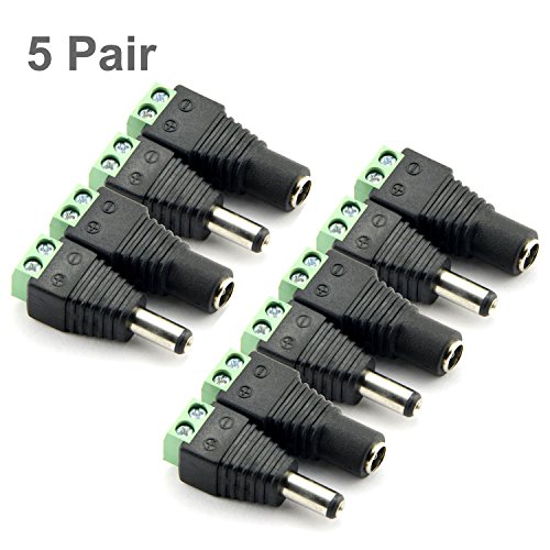 E-outstanding 5 Pair DC Power Jack (5 x Male and 5 x Female) 5.5mm x 2.1mm CCTV Power Jack Adapter