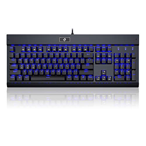 Eagletec KG010 Mechanical Keyboard Clicky Blue Switch Equivalent Wired Ergonomic Office Keyboard, Steel Aluminum Series Blue LED RGB Backlit with 104 Keycaps for Windows PC Home or Business (Black)
