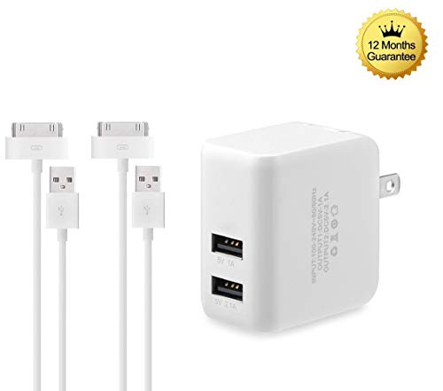 Eaglewood 3.1A Dual Port Wall Power Adapter with Extra Long 6' USB to 30 Pin Charging Cable Cord for iPhone 4s/iPod Touch 3/4, iPad 2/3