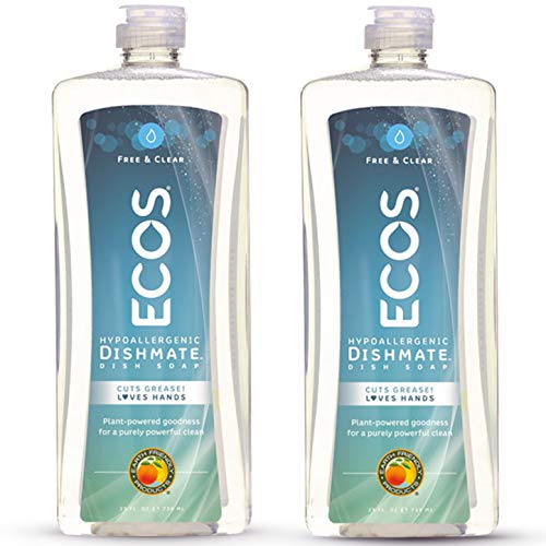 Earth Friendly Products ECOS Dishmate Hypoallergenic Dish Soap, Free & Clear, 25 oz Bottle (Pack of 2)