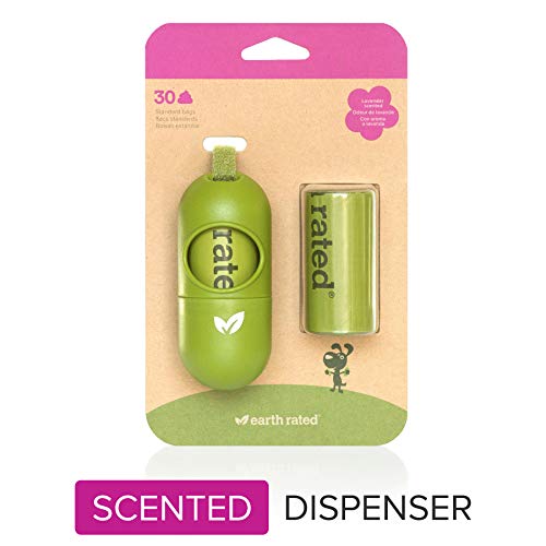 Earth Rated Leash Dispenser for Dog Waste Bags, Includes 30 Lavender-Scented Poop Bags