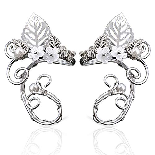 Elf Elven Ear Cuffs, OwMell Leaf Flower Filigree Fairy Elven Cosplay Fantasy Costume Handcraft Ear Wrap Cuff Earrings