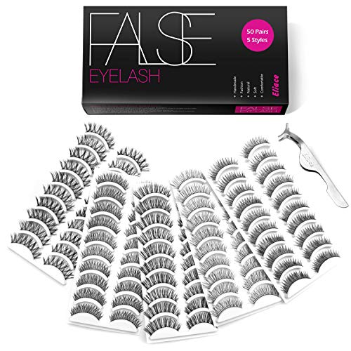 Eliace Part#: eyelashes50dui - Eliace 50 Pairs Styles Lashes Handmade False Eyelashes Set Professional Eyelashes Pack,10 Pairs Eyes Lashes Each Style,Very Natural Soft and Comfortable,With Free Eyelash Tweezers