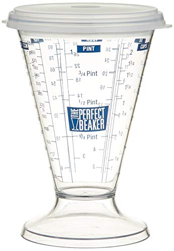 - Ideal measuring beaker for liquid or dry ingredients with clear plastic, tight fitting freshness seal