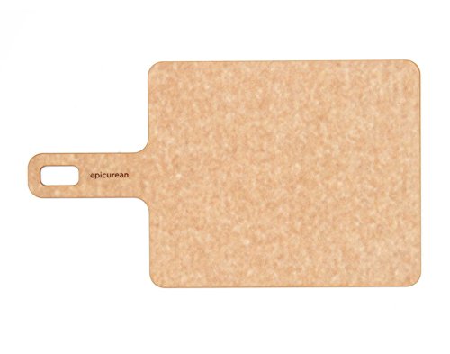 Chop vegetables, mince herbs and garlic, Fillet fish, and present exemplary dishes with this cutting board from Epicurean handy series. Made from a Natural colored wood fiber composite, this cutting board is made to take a beating so you can keep on eating. Dual sided to prevent contamination and equipped with a handle, This cutting board is easy to grab and go for use Whether you want to chop and carry vegetables to a pan or slice bread to present for dinner. Knife friendly, This cutting board will score rather than damage your knives while it is also heat safe up to 350 degrees Fahrenheit and functional as a trivet. Complete with a handy hanging hole and made in the USA, this dishwasher safe cutting board is an exceptional kitchen essential. ing customer satisfaction, This cutting board is backed by a manufacturer's lifetime . 9'' L x 7'' W x 3/16'' HFeatures: