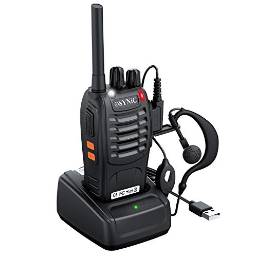 eSynic Rechargeable Walkie Talkie 1 pcs Long Range Two-Way Radio USB Cable Charging FRS462MHz Walky Talky with Earpieces Flashlight 16CH Single Band FM Handheld Transceiver