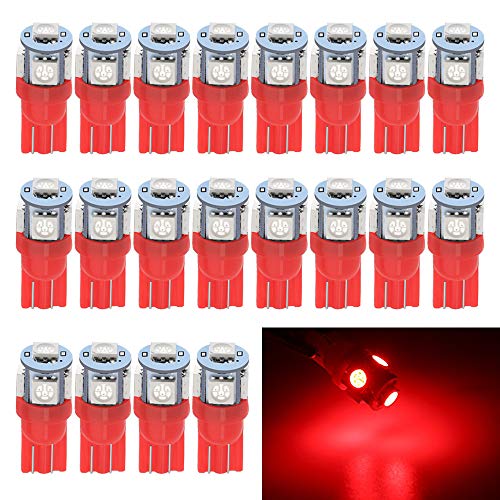 EverBright 20-Pack 194 Led Bulb Red, 5050 5-SMD T10 194 168 W5W 2825 LED Bulb For Car Interior Lights Dome Map Trunk Light Clearance Dashboard Bulb License Plate Light Lamp DC 12V