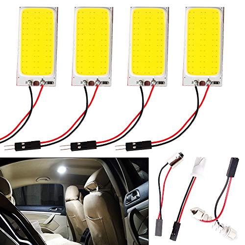 Everbright 4-Pack Super White COB 36-SMD LED Panel Dome Lamp Auto Car Interior Reading Plate Light Roof Ceiling Interior Wired Lamp With 4BA9S Adapter,4T10 Adapter,4Festoon Adapter (DC-12V)