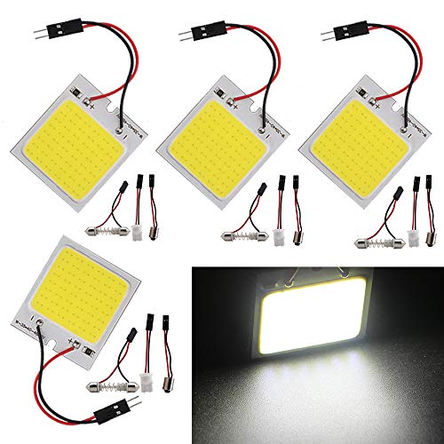 Everbright 4-Pack White Led Panel Dome Light Lamp, COB 48-SMD Led Interior Car Lights Auto Led Dome Lights Interior with T10 /BA9S/ Festoon Adapters, DC-12V