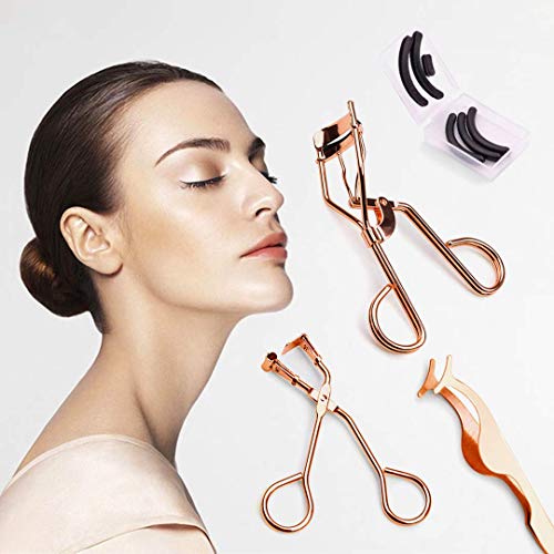 Eyelash Curler, Makeup Tools Set with Partial Eyelash Curler, Mini Slant Tweezer & Silicone Refill Pads