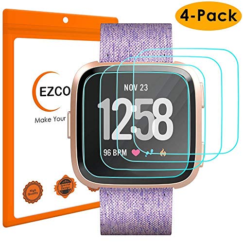 Part#: 4336698298 706084738531 - EZCO 4-Pack Screen Protector Compatible with Fitbit Versa & Versa Lite (Not for Versa 2), Waterproof Tempered Glass Screen Protector Cover Saver for Versa Smart Watch Scratch Resist Anti-Bubble