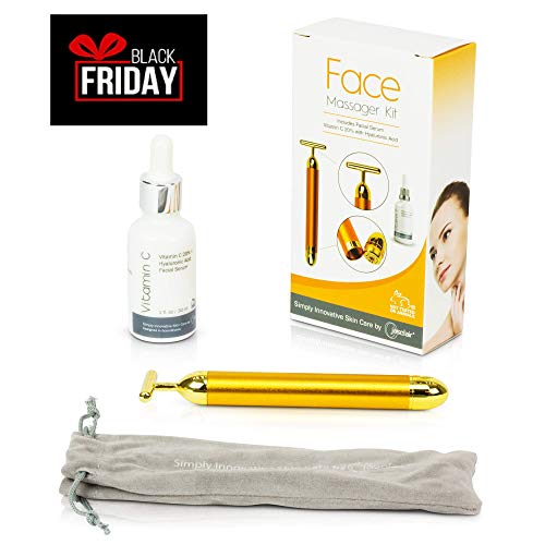 - ✔ POWERFUL SKIN REVITALIZING KIT - This innovative skincare kit features our 24K gold plated massager and exclusive vitamin C with hyaluronic acid facial serum. Using these two together is proven to reduce the look of double chin and neck folds, eye puffiness, enlarged pores and the appearance of fine lines & wrinkles. It also helps firm, tighten and brighten your look and revives the skin tone for a smoother, fresher, more vibrant youthful complexion.