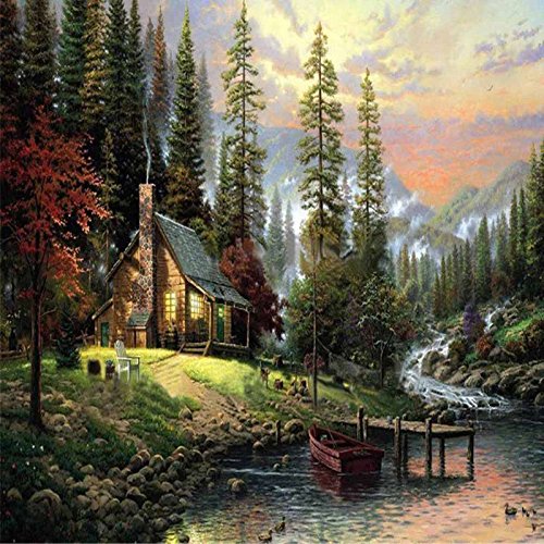 Fairylove 40 x 50 Paint by Numbers DIY Oil Painting - Nature View (Cabin in The Woods)