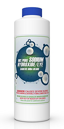 Pure Lye Sodium hydroxide, also known as Caustic Soda Beads or Lye, is a product that is used in the creation of soap, detergent, paper, textiles and drinking water. It is a chemical base and comes packaged as a white solid. Soap making: Fats and oils, by themselves, do not mix with water. Sodium hydroxide breaks up the triglyceride in fats and oils and turns the fatty acids into sodium salts. The salts reduce the surface tension in liquids and allow grease to be easily washed away with water. Try making a pure soap with no perfume, fragrances, dyes or additives that can irritate your skin. Using a pure soap with only the glycerin can cleanse and improve your skin condition - no matter what that condition is. Pure lye soap will sooth insect bites and actually repel insects with its residue. Try shaving your lye soap and using it as a laundry detergent, or rub a bar directly on a problem stain. Lye soap has been found to be as effective as commercial products on the market. (Comes in HDPE plastic container with easy close lid)DRAIN CLEANING with PURE LYE or sodium hydroxide.