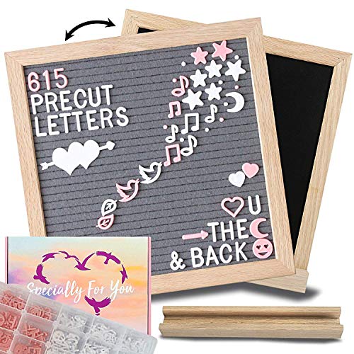 Felt Letter Board with Letters - 10x10 Gray/Black 2in1 Magnetic Chalkboard Message Board: 615 Precut Felt Board Letters, Oak Frame & Stand for Baby Announcement Board with Letters; Farmhouse Decor
