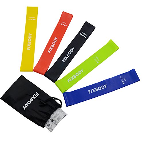 FIXBODY Exercise Loops Resistance Bands for Home Fitness, Stretching, Pilates, Yoga, Rehab, Physical Therapy and More with Instruction Guide (Multi Color-5 Pack)
