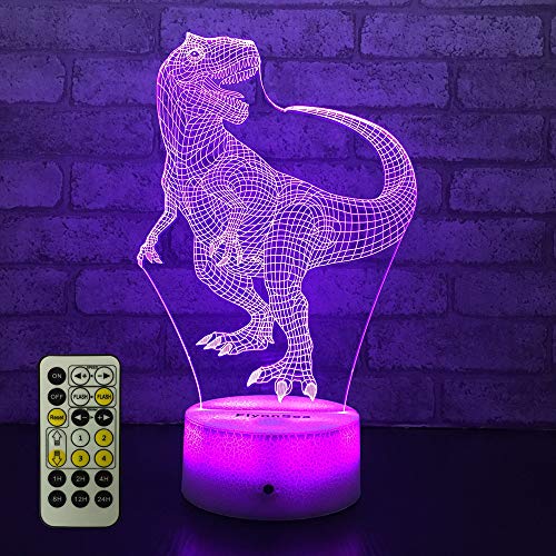 FlyonSea Dinosaur Night Light Dinosaur Lamp Bedside Lamp 7 Colors Change Remote Control with Timer Kids Night Light Optical Illusion Lamps for Kids Lamp As a Gift Ideas for Boys