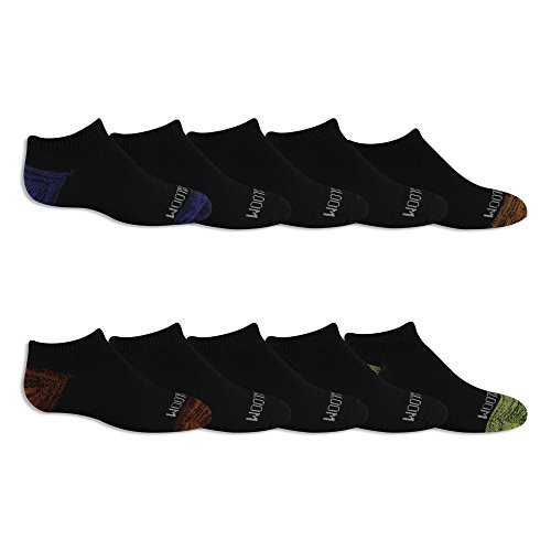 Fruit of the Loom Boys' Big 10-Pair Flat Knit No Show Socks, black assort, Large (Shoe Size: 3-9)