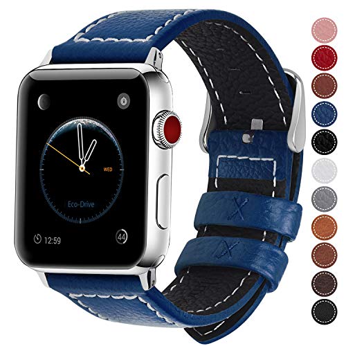 Fullmosa Compatible Apple Watch Band Leather 42mm 44mm 38mm 40mm for iWatch Series 5/4/3/2/1,42mm/44mm Dark Blue + Silver Buckle