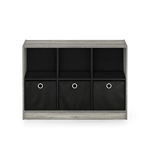 FURINNO Basic 3x2 Bookcase Storage, 3" X 2", French Oak Grey/Black