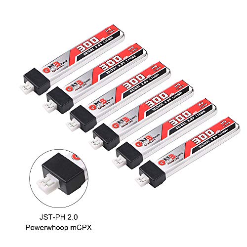 Crazepony Part#: 255719145JXT 673400142979 - GAONENG 6pcs 300mAh 30C 1S LiPo Battery 3.8V/4.35V LiHv Battery with JST-PH 2.0 Connector for Tiny Whoop Micro FPV Racing Drone
