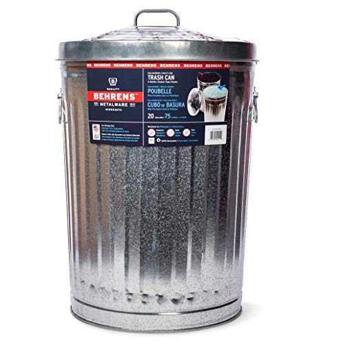 These Metalware Classics, heavy-duty garbage/utility cans are Made in the USA by Behrens Manufacturing. The company and its products have stood the test of time. You'll recognized the true authenticity and unmatched quality melded out of American pride. These cans hold everything and are made to last. Ideal for trash, yard waste, seed, and larger pet food/livestock storage, decorative plants and trees, Christmas tree stands, laundry baskets as well anything else you want to keep to appreciate the industrial look of galvanized steel.Designed with the highest quality material, the galvanized steel trash can is made to be durable and is hard wearing. Contains 0% petroleum and none of Behrens products require a Prop65 warning label. This means nothing toxic will leach into food or seed. These steel trash cans feature an offset bottom to keep the can off the ground and prevent cans from sticking together when stacked, pierced and curled drop-down, solid steel handles for easy portability, also included, a tight-fitting embossed Behrens lid with pierced and curled, galvanized steel handle.Built to last with superior structure and strength, which makes them resistant to rodents, rust and odor. Choose from a selection of sizes, depending on your needs, which includes: 10, 20, and 31 gallon covered cans. These eco-friendly and sustainably manufactured garbage cans are 100% Recyclable and are more durable and longer lasting than plasticFeatures: