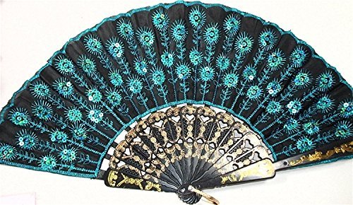 Gciyaen Part#: sourcingmap 508966293868 - GCIYAEN Peacock Pattern Sequin Fabric Hand Fan Decorative Fashionable (New Blue)