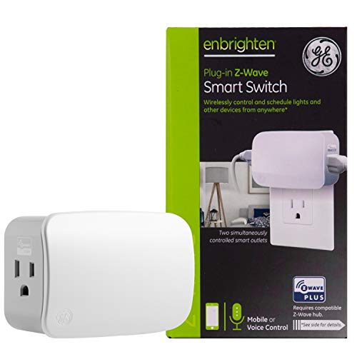 Expand your control with the GE-branded Enbrighten Z-Wave Plus Plug-in Smart Switch. When paired with a compatible hub, the smart switch operates lighting, fans, pumps and more through individual commands and programmed settings. Wirelessly control and schedule indoor fixtures for effortless management of your home. Your automation possibilities are seemingly infinite when connected to hubs from Wink, SmartThings, HomeSeer, Vera, Nexia and more.Features: