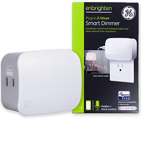 Transform any home into a smart home with the plug-in GE Z-Wave Plus Smart Dimmer. The dimmer allows you to wirelessly schedule, control and adjust the brightness of any dimmable table or floor lamp in your home from anywhere, at any time. Featuring one polarized wirelessly controlled outlet, the Z-Wave Plus Smart Dimmer provides ultimate flexibility for your home lighting and its full-range dimmability helps cut energy costs while extending the life of bulbs. Compared to Z-Wave Classic models, the GE Z-Wave Plus Smart Dimmer offers 50% more wireless range and energy efficiency with a 250% faster processor and 400% more memory. Offers full control from any mobile device * or Z-Wave enabled wireless remotes. Take control of your home lighting with GE Z-Wave Plus Smart Lighting Controls! This product is ALEXA COMPATIBLE however it REQUIRES AN ALEXA SUPPORTED HUB for voice control with Echo Products (Alexa device and hub sold separately). **This product CANNOT connect directly with ECHO PLUS (Only ZigBee products can connect directly to Echo Plus).**Features: