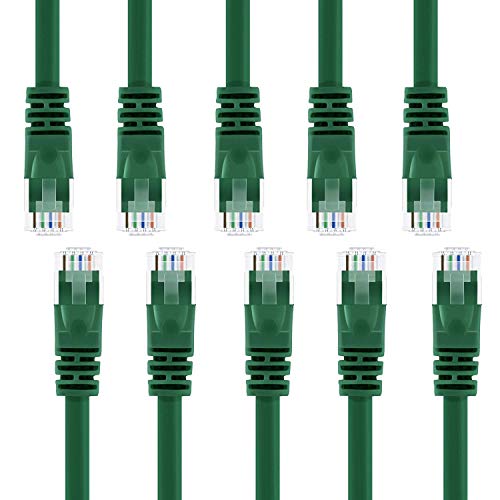 GearIT 10 Pack, Cat 6 Ethernet Cable Cat6 Snagless Patch 7 Feet - Computer LAN Network Cord, Green - Compatible with 10 Port Switch POE 10port Gigabit