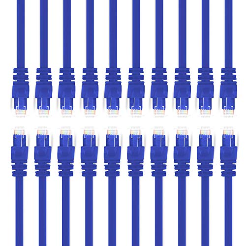 GearIT 20 Pack, Cat 6 Ethernet Cable Cat6 Snagless Patch 1 Foot - Computer LAN Network Cord, Blue