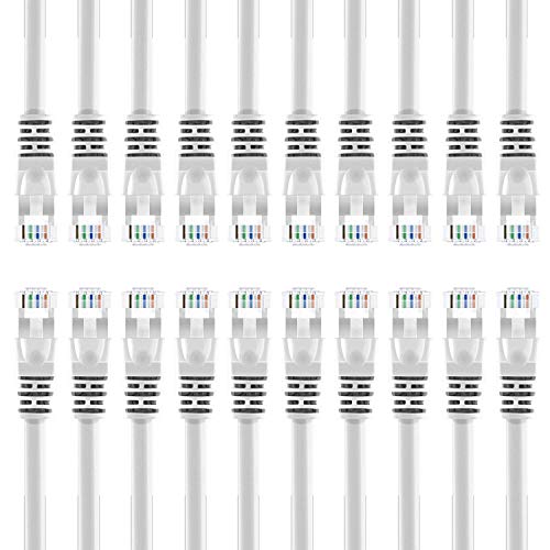 GearIT 20 Pack, Cat 6 Ethernet Cable Cat6 Snagless Patch 10 Feet - Computer LAN Network Cord, White