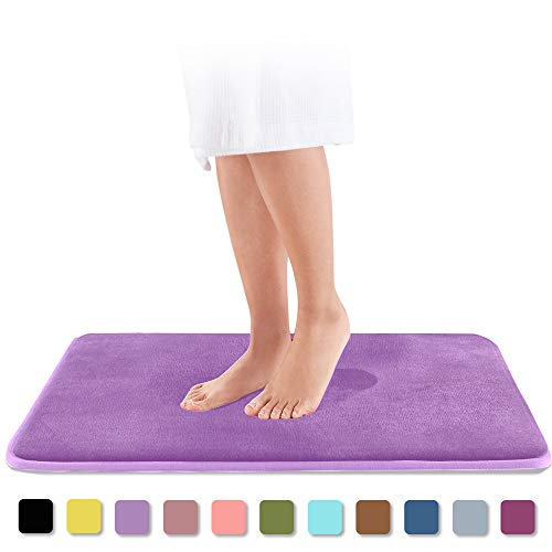 Genteele Memory Foam Bath Mat Non Slip Absorbent Super Cozy Velvet Bathroom Rug Carpet (17 inches X 24 inches, Lavender)
