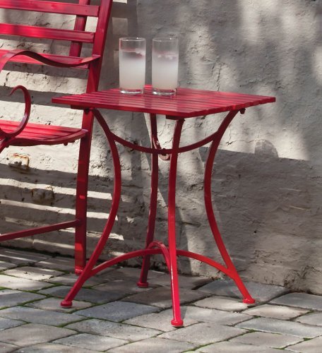 Add a pop of color to your outdoor space with this classic metal side table dressed up with a splash of vibrant red. Perfect for holding that glass of lemonade, that book you've been meaning to get to, or perhaps that sunhat for when you'd like to have some shade, this table is the perfect complement to any outdoor space. It pairs handsomely with our Red Metal Garden Bench.Features: