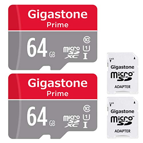 Gigastone 64GB 2-Pack Micro SD Card with Adapter, U1 C10 Class 10, Full HD available, Micro SDXC UHS-I Memory Card